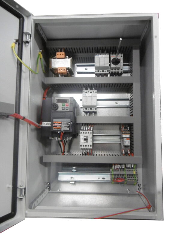 Questo quadro elettrico consente un avviamento graduale e controllato del motore, evitando sia problemi di esercizio e di durata dell’impianto, sia elevati costi di manutenzione. Inoltre, attraverso il potenziometro montato a bordo quadro consente di regolare la frequenza di uscita dell’inverter, ovvero la velocità del motore.